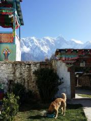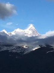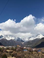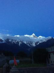 因为留宿索松村藏民-普巴之家,得以非常好的位置欣赏南伽巴瓦峰美景,普巴家有个小阳台正好面对南伽巴瓦峰,我们去的那天天气非常好,晚八点左右,峰顶渐露端倪,湛蓝的天空下,南伽巴瓦峰顶金光熠熠