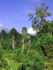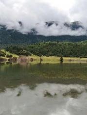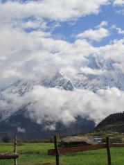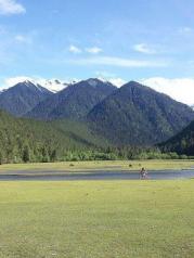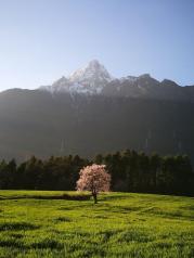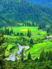 岗乡自然保护区确实非常漂亮,四周冰川和雪山环绕,茂密的冷杉林,时常云雾缭绕,仙境一般。春天桃花盛开,陪衬着绿油油的冬小麦,还有很多鸟类,听说猴子和鹿也多。