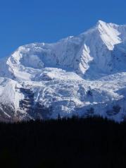 米堆冰川在米堆河的上游,是藏东南海洋性冰川的典型代表。在这里,冰川、湖泊、农田、村庄、森林等融会在一起,是一处人与自然和谐相处的典范,是旅游的绝好去处。冰川主峰海拔6800米,雪线海拔只有4600米,常年雪光闪耀、景色神奇迷人。冰川冰洁如玉,景色秀美,形态各异,姿色醉人。