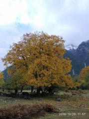 岗乡自然保护区,清幽,美丽,真正的田园气息。 岗乡之行很是意外,因为包车师傅推荐的,之前就不知道。从卓龙沟出来,和司机聊天,他推荐我们去岗乡,草湖,说那里景色不错,关键是路好走,我们的商务车没问题。于是四个人商量一下,导航那个打开,一路开向岗乡。 路面是油路,就是窄一些,好在车不多,沿途美景,还遇见藏猕猴,各种黄叶红叶,湿地小溪,悬崖跌水。到了岗村,一村的农家乐。 先去了草湖,然后住在一家颇有规模的山庄里,喝了点茶,在山庄出事的带领下到后面的树林里摘蘑菇,摘树皮菜,打核桃,玩儿high了。
