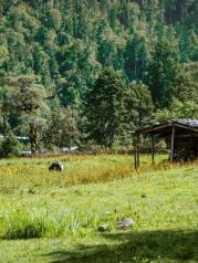 离林芝不远的米林,有一个美丽的地方,叫南伊沟.他离米林县城大概有20公里,是一个珞巴民族村.进去南伊沟的路很难走,因为曾经是用来运木材的.经过一小时左右的跋涉,来到一个位于原始森林环绕的原始珞巴村庄.群山环抱,云雾缭绕.春天满山的桃花杜鹃,秋天满山的红叶