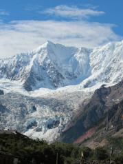 在米堆冰川这里,冰川、湖泊、农田、村庄、森林等融会在一起,是一处人与自然和谐相处的典范,是旅游的绝好去处