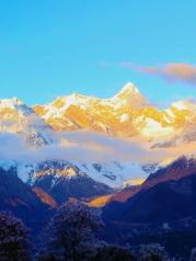 中国最美雪山”的荣誉赋于了南迦巴瓦,它巨大的三角型峰体终年云雾环绕,难遇真容,只有有缘人才能得见,它座落在西藏米林县和墨脱县交界处。