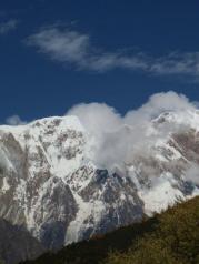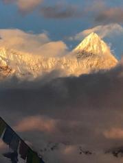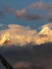 南迦巴瓦峰,从某个角度看据说像横卧的美人,可惜没看出来。不过单看着远处的这座山峰,还是会觉得好看,白雪覆盖,阳光下云雾缭绕,神仙之地?