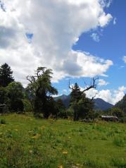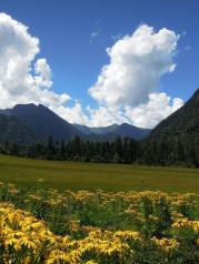 南伊沟——因为是阴天来的,时不时还有阵雨,感觉像在仙境里,远处的山云雾缭绕,让人有错觉会有仙人住在山里,在沟里还有个村落,叫洛巴村,生活着洛巴族,经营着小吃点之类的,推荐冷水烤鱼,非常的鲜,下次要等到晴天再去一次。
