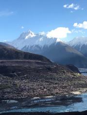 318国道川藏线色季拉山,一路山峰上已有积雪,在色季拉山垭口,远处的南迦巴瓦峰在云层间露出她优美的腰际线。沿着念青唐古拉山脉和喜马拉雅山脉之间的雅鲁藏布江往东南,向着神山南迦巴瓦峰一路前行,路过中国第54个民族门巴族聚居的村庄,神秘而安静的高原田园风光。这个季节南迦巴瓦峰多云,居然很难得地露出九座山峰全貌,不过稍纵即逝。面对神山圣水,虔诚的心。