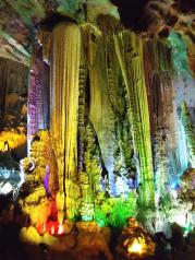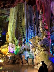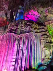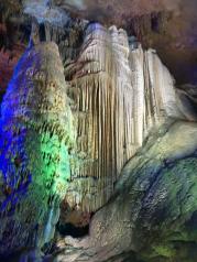 银子岩在洞外没有发现什么,但是到了洞里边完全不一样,这里的灯光确实漂亮,加上溶洞里面的形状确实是千姿百态,而且都是那种规模比较大,比较壮观的那种。