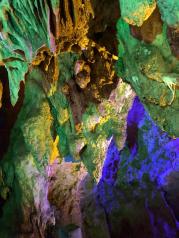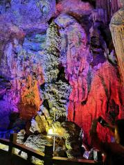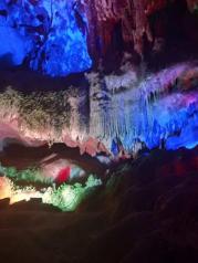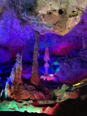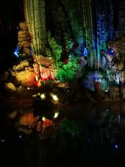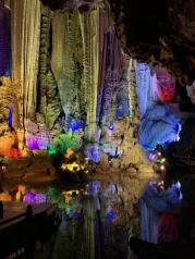 银子岩景区的钟乳石溶洞挺不错的,就是里面通风不太好,走一遍就满头大汗了,总体来说还是不错的。五彩斑斓的灯光打在溶洞的石柱上面,下方的湖水像一面镜子,倒映着钟乳石,像梦幻的海底世界。