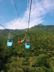 南山竹海去的时候天气不是很好,烟雨蒙蒙,不过各有各的美吧,当时下雨雾气在吹,然后站在亭子里跟仙境一样,哈哈.景色非常怡人,山清水秀,空气清新,缆车,索道给老人和小孩带来便捷,很人性化。