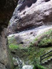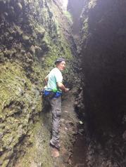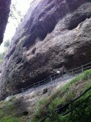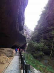 皖西大裂谷开始没觉得有什么特别,尤其是天还下着小雨,走着走着是一片竹海,到后面就能看到岩壁,好高,好壮观,谁知道这只是小儿科,更刺激的在后面,就是峡谷通道,在夹缝中攀爬,尤其是冒雨攀爬,真是又兴奋,又害怕,害怕什么时候可以到头,会不会自己坚持不到底,却又想挑战一下自己,在最后登顶的时候每个人都是兴奋的,都觉得是值得的,成就感满满,如果没有这雨水估计也不会让我们觉得这么有挑战性