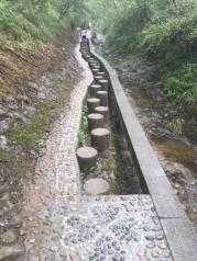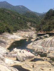 霍山大峡谷漂流刚上小艇就下大雨了,不过第一个落差就已经完全湿透,不怕下雨了。大约一个小时左右,沿途有工作人员帮忙指点,还是很有意思的,安全刺激,值得一玩。