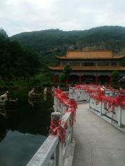 大别山石窟进入景区入口的景色给人的感觉真的很惊艳,一大片争奇斗艳的荷花池和逶迤其中的小木桥,穿过一处佛殿就进入后面的主景区,登入最大的石窟再回望,感觉超爽。因为天气太热,所以没能登顶并从后面下山,听说后山还有滑道和一线天的风景。