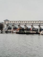 梅山水库大坝左右两边的风景大是不同,水质也是天差地别,一边是水质清澈,秀美的水库风光,小船,游船驶过,绿色的小岛林立。还乘船近距离欣赏水库,我们一行人乘船,因为人数较多,所以坐了明珠号大船参观水库。