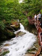 天堂寨风景区景色迷人,值得前往!潺潺的溪水清澈见底,漫步山涧之中,看天空升起的蔚蓝,置身于此,望着那森森古木,赏着那淙淙银泉,令人陶醉!有机会还会再来!