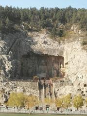 洛阳龙门石窟 龙门石窟位于河南省洛阳市城南洛龙区龙门镇伊河两岸的龙门山和香山上,是中国石窟艺术瑰宝之一,其与甘肃敦煌的莫高窟、山西大同的云冈石窟、甘肃天水的麦积山石窟称为中国四大石窟。龙门石窟现为全国重点文物保护单位,国家5A级旅游景区。龙门石窟始凿于北魏孝文帝(公元493年),后经历朝历代的连续凿建,在南北长达1公里的山体上,形成了规模宏大的石窟群。现存石窟2345个,造像10万余尊。各种造像惟妙惟肖。尤其是位于山体中央主洞中的卢舍那大佛,造像传神逼真,成为龙门石窟中的一颗璀璨明珠。