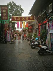 丽景门古街道,两旁的小店应该也是清或后期的房子,牡丹瓷特漂亮,主街最后的麦茶德双皮奶3块一份,便宜又好吃,喝的也不贵,好评,不翻汤就是丸子、豆腐皮、海带丝、粉丝做成的汤,有胡椒味,也不是很好吃,尝一尝就可以了,丝巾很便宜,买了5条,一共55,开心