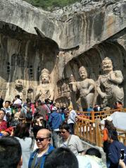 龙门石窟值得一去,先去玩的白马寺,紧接着来到龙门石窟游玩,天气很热,五一期间人非常多,以伊河为界,分为东山和西山石窟群,西山石窟群多而全,最精华的都做西山,不愧为世界级文化遗产,玩的细致走一大圈下来还真是不轻松的,可以游船观景.门票可以微信购买,扫二维码进入,快捷方便不需要排队买票了,还有微信关注讲解,这点非常好的.