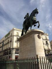 太阳门广场这里是马德里的市中心,是我觉得西班牙最拥挤的地方。至于这拥挤的程度具体要怎么形容,你就想象下是北京的天安门广场吧。太阳门广场就是雕像多,除了市长卡洛斯三世的骑马铜像,还有著名的熊和草莓树雕像。