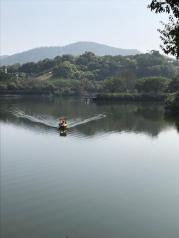 雁鸣湖度假村环境很好,原来的是荒山野岭,十几年前改造成生态园,有各种的种植物,包括柚子杨梅梅花等,不同的季节有不同的花果,是避暑的好去处,还有几种机动游戏,不过可能淡季机动游戏没开,铁索桥、滑草和电动船最多人玩了。来这里绕湖走一圈,周末去玩一下和吃顿饭还是可以的。