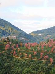 无量山樱花谷位于大理南涧县,早上从大理出发,车程都 要3-4个小时,这里原原来是私人承包的茶山,偶发心思,在茶树间种下了冬樱花,成就了此景,冬樱茶每年11月下旬至12月上旬绽放,花开的具体时间要视天气情况而定,花期不长,约20来天左右。景区内的餐饮、住宿还不是很成熟,樱花盛开的季节,景色还是很美的,目前是免门票,性价比还是挺高的。
