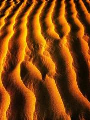沙漠公路路况特别好,公路两旁的沙地上插满了网格状的芦苇杆,比沙地高10公分左右,应该是用于防沙护路的,离路边十多米远处还有防沙网。眼前只有高低起伏的沙丘延绵不断,这是一片沙的海洋,沙的世界,它占据了我所有的视线。沙丘上的沙浪可以印证风的足迹,就像水面泛起的波纹一样,只是水波不是静止的,而沙漠上的风痕清晰可见,可以触摸得到。