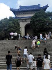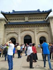 中山陵來,南京第一个去的就是中山陵,免费开放,所有的建筑都是白墙藍瓦,导游介紹说是跟国民党党旗"青天白日"旗相呼应,人比較多,有游览車直接到中山陵,這一带景點多