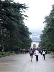 到了南京,中山陵是必去的。自下而上,拾级而上,看不到中间的平台,寓意革命尚未成功,同志仍需努力。到了顶峰,俯瞰来时的路,只见平台而不见台阶,寓意和平,一马平川。