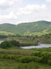 克旗青山国家地质公园是高山草甸。所谓高峡出平湖,这里是高山出平原。索道上山后,豁然开朗,就看到一片辽阔的青青草原,远处牛、马悠哉地吃着草,风景怡人。