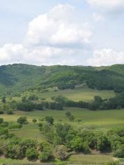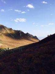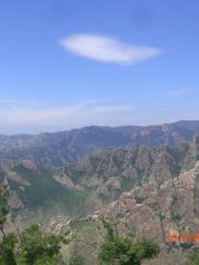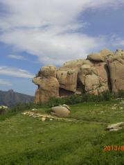 青山国家地质公园很独特的风景。绵延不绝的山地,感觉都是石头山,石头山的中间还有夹杂着大片的山间草场,高高低低的起伏。上山可以乘坐缆车,沿途跨越山坡和草地,很有意思,风景也不错。山顶很平缓,突兀着一些大石头,有的石头像骆驼,像乌龟,站在顶部还可以远眺山下的峡谷和远处的山,视野很开阔,心旷神怡的感觉。就是夏天比较热,比较晒。