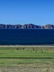 见到色林措,展现在面前的是一大片蓝色的湖.还有许多动物,很和谐的景象,可以美美的欣赏一番.