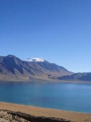 当惹雍措又称当热错、唐古拉攸穆错,位于藏北文部二村、象雄王国遗址旁边,海拔4530米,是西藏著名的圣湖之一,也是苯教最重要的神湖。此处人迹罕至,湖水明净清澈,美不胜收。 当惹雍错湖面形似一金刚杵,上圆中细下部长,四面群山环抱,南面的达果雪山山顶积雪终年不化。因为易守难攻的地势和良好的气候,这里曾是象雄王朝的王宫所在地,是迄今藏北象雄遗迹最集中的地区之一,是解读象雄文化之谜的一把钥匙和研究苯教文化的重要场所。