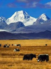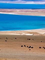 当惹雍措旁栖息着许多牛羊,正在怡然自得地沐浴着阳光,看到此情此景,哪怕是舟车劳顿的旅行者的心也能自然而然地放松下来,城市的生活实在太喧嚣,来到辽阔的大西部可以得到难得的放松,洗涤一下城市人天天对着手机电脑疲劳的双眼倒是不错的选择。