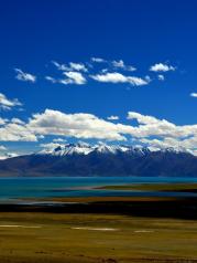 色林措,湖水清澈见底,但每片湖却都有着自己的风格;只有在这里你才能领略圣湖的真正含义,在蓝天白云、雪山草地间的湖泊犹如一块块蓝色的宝石镶嵌在大地上。