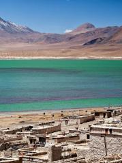 位于西藏那曲尼玛县南部的当穹错。第四世纪时期,与当惹雍错在同一个湖盆之内,因地质变化分开,因而有小的“当惹雍错”之称。文布乡坐落于美丽的当穹错旁,有南北两村。中午时分,在村里的玻璃阳光餐厅内用餐,看着雪山围绕的湖泊,喝着香甜的酥油茶,一种惬意和浪漫的感觉油然而生。