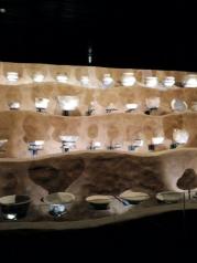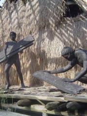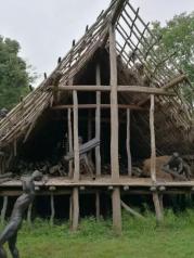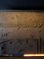 河姆渡遗址博物馆,位于余姚的河姆渡镇浪墅桥村。因为不在城市里,倒是多了几分低调。 整个遗址博物馆分博物馆和遗址展示区两个部分。 博物馆的主体建筑很有特色,人字形坡面,高出地面的架空层……河姆渡的文化已融在其中。 进博物馆后,首先看到的是一年特殊的墙。上面展示了河姆渡的文化堆积厚度,叠压着四个文化层,第四文化层距今已经7000年。 里面的其他展厅,依次展示了河姆渡人的农业、生活和信仰。7000多年前人工栽培的稻谷,骨耜、木杵等全套耕作工具,带碳化饭粒的陶片,还有最珍贵的代表性文物:双鸟朝阳象牙蝶形器。这些都证明了长江流域下游地区也是中华文明的重要发源地。 逛完博物馆出来的时候会经过一个纪念品销售