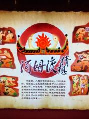 河姆渡遗址因为入住在附近, 就顺带去这地方转了圈, 感觉印象还不错的! 博物馆地方很大, 馆内其实不算大, 但算入各种室外的还原建筑, 地方还是挺大的。 看博物馆入口处有停车场, 因为是工作日去的, 人一点也不多, 可以说几乎没有人。 博物馆门票处是免费赠票的, 不需要购票。 看票子设计很人性化, 正面是很有河姆渡文化代表性的图案, 背面是地图, 还是很周到的。 进入馆内, 看到是按顺序在介绍人来起源。 真没想到这地方7500年前就有人生存了, 随后慢慢地开始耕作, 有稻子培养的痕迹, 说明水稻文化很早就被掌握了。 随后便是织作, 古人还是很聪明的, 在掌握农耕织作之后, 古人也在追求美的事物