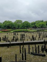 河姆渡遗址门票免费 还是非常值得一去 看看河姆渡时期当时的生活方式 也很惊讶居然遗址在这样繁华的地区还能保存良好 当然因为都是木制的 只有残留的木桩子了 而且木桩子也是深埋地下了 但是还是非常值得一看的