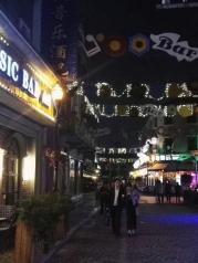 宁波老外滩是晚上去的,很热闹,国庆期间桥上、高层建筑都开灯,挺漂亮的。酒吧一条街更是热闹非凡,江边有很多唱歌的艺人,吹吹风,散散步,惬意