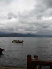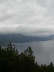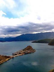 丽江去泸沽湖,客栈帮忙定的六个人的商务车,往返130元/人,几乎全部是盘山路,不是十八弯而是一百八十个急转弯,我去的那天路上下雨了,司机师傅把我俩送到湖边的大洛水村,帮我们找临湖的便宜客栈,带我去坐船,参加晚上摩梭族的篝火晚会,一直陪我们到晚上九点钟篝火晚会结束又把我们送回客栈。坐船游湖,50元/人,湖中有个里务比岛,上岛要加收30元/人。至于晚上的摩梭族篝火晚会,真心觉得有点坑了,100元/人,包括一顿晚饭(还吃不饱)。 第二天早起想看泸沽湖的日出,但从六点等到七点,也只看到一点红光,太阳最终还是没有冲出厚厚的云层。 拼车环湖,75元/人,据说环湖一周有70多公里,一部分在云南,一部分属于四