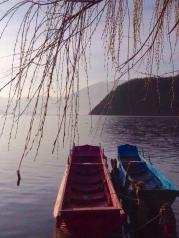 泸沽湖,人间仙境!天是一成不变的湛蓝!水是一如既往清澈见底!空气是始终如一的无比清新!只有云朵时而洁白、时而金黄。感觉在这里的日子是悠闲的!女人们聚在一起晒太阳,男人们抽着烟侃大山,背着柴火的女人因为没有精心打扮而拒绝合影!藏族的小伙子卖力的滑动着船桨,船尾的女人因为有人照相而感到害羞!