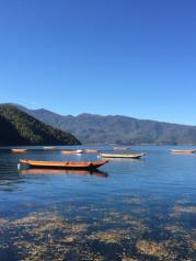 泸沽湖——从丽江包车过去,一人100块,单程。将近六个小时盘山路,晕车的要提前吃好药。途中还遇到落石。我家大叔强烈要求多给司机师傅二十元钱,说师傅不容易。明明是摩梭人的居住区,却收取门票,一人100块,感觉不合理。住在大洛水,海景度假酒店,老板娘是台湾人,服务超级棒,房间更是没得说,惊艳!在房间阳台上泸沽湖美景就可以尽收眼底,对面的格姆女神山云雾缭绕,特别美。第一天晚上去了摩梭族民居,算是了解了当地文化,但期间不断推销银器要人反感。之后的篝火晚会比较有意思。第二天选择乘坐猪槽船游湖,听船夫讲讲故事。第三天骑电动车环湖,感觉很明智,因为拼车不自由,自行车是真心骑不下来,除非你是运动健将,反而是是