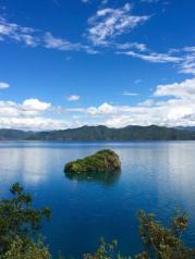 坐大巴车进入泸沽湖景区看到湖水的时候,真地感觉内心突然安静了,天蓝蓝湖蓝蓝。因为时间紧张,第二天包车游了泸沽湖,是当地村小组办的一个旅游服务的组织,在落水村里有流动咨询台,听司机说前几年有点乱,各种坑蒙拐骗游客让泸沽湖名声变差,为了保护好旅游资源,形成了这么一个组织,司机很好,给我们讲了很多摩梭族的风俗习惯,泸沽湖也很美,下次要多住几天
