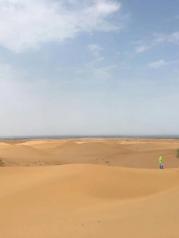 沙坡头和通湖草原一样同属腾格里沙漠。但是这里不仅有沙漠,绿洲,还有黄河,戈壁,四景合一,壮美!今天的天气不太好,阴沉沉的,但是温度很适合,很凉爽。这个沙漠与其他两个最大的不同在于,在这里可以看到人类改造自然的力量。从我国第一个沙漠研究站在这里建立,治沙奇迹就在这里产生。治沙工程采用“麦草方格”的技术,逐步让大漠变绿洲。