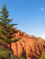 火石寨,在宁夏南部的固原市西吉县境内,属六盘山西部余脉。由于它的山峦呈现暗红色,尤其在绿树的掩映下,如同一团团燃烧的火焰,因而取名火石寨。是宁夏唯一同时拥有国家地质公园、国家森林公园、国家国土资源科普基地,自治区级自然保护区的旅游景区。门票60元/位,1.2m以上儿童半价。车不能开进景区,只好停在景区门口的停车场。景区很大,不过我们去的时候下雨,不尽兴,雨雾朦胧,景色大打折扣。