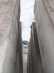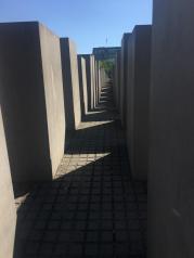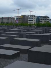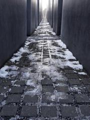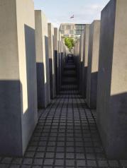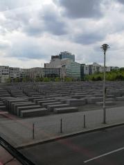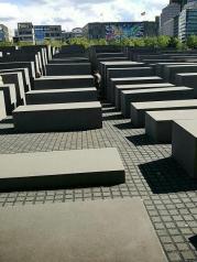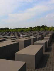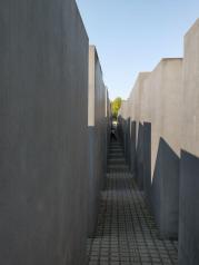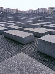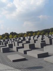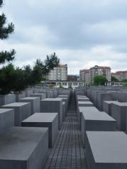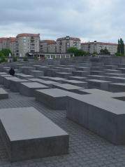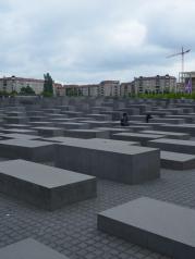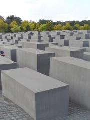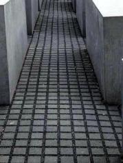 位于柏林市区的欧洲被害犹太人纪念碑是一大片的高低不等的水泥长方形柱子组合而成,设计也很巧妙依据地型的变化。暗灰色的水泥森林显得庄严阴冷。走在里面感觉一阵无形的压力,又像迷宫似的