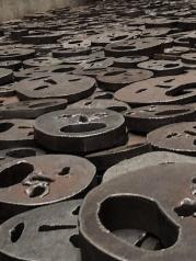 犹太人大屠杀纪念碑群,紧邻德国联邦议院和勃兰登堡门,由2711根长短不一灰色碑柱组成。静想其设计绝妙寓意深刻。置身其间犹如迷宫,远远望去好似波浪。每块石碑都无任何文字标识,是无数亡魂在无声哭诉;材质坚实厚重形如棺材。步入其中,无尽而单调的形状,让人不由得陷入沉思。