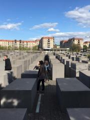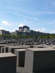 欧洲被害犹太人纪念碑的设计非常大胆,广场上超过三千块平滑巨大且灰暗的混泥土块,好像述说着数百万被害的犹太人无辜地在战争中被屠杀,行走在方方正正、巨大无声的混泥土块之中,令人觉得毛骨悚然、战争的可怕。