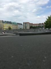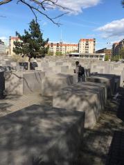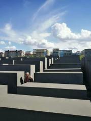 欧洲被害犹太人纪念碑群由建筑师彼德•艾森曼(Peter Eisenman)设计,于2003年至2005年间在柏林市中心勃兰登堡门附近建成。人们可从四个方向走入碑群,并从碑群的间隙瞭望周边的建筑和景色。由纪念碑群的东南侧沿台阶或乘电梯可到达一地下信息厅,展厅的设计风格与碑群的块状外形风格相一致,介绍了有关被害者、受难地及今日各纪念地的信息。 还是很震惊的。