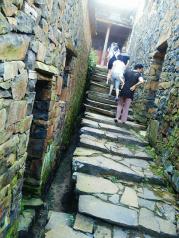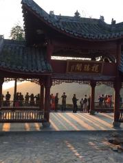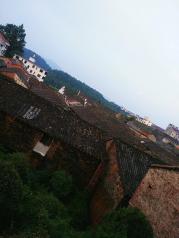 乌石村村里砌房的石头都是黑色的,比较特别。 村子本身比较普通,有意思的是村子可以看日出与梯田。 五点五十到的揽胜阁,已有不少人在此等候。六点零五分左右,太阳逐渐从对面的山头跳出,真是光芒四射,等日出的人们都禁不住欢呼。