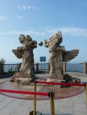 蓬莱阁赶上大雾天啊!真是蓬莱仙境的感觉,白雾缥缈,唯一就是看不见远方的大海啊!有得必有失吧!总体感觉不错啊!就是人多。景色不错,也很凉快,就是雾太大,海上什么也看不到